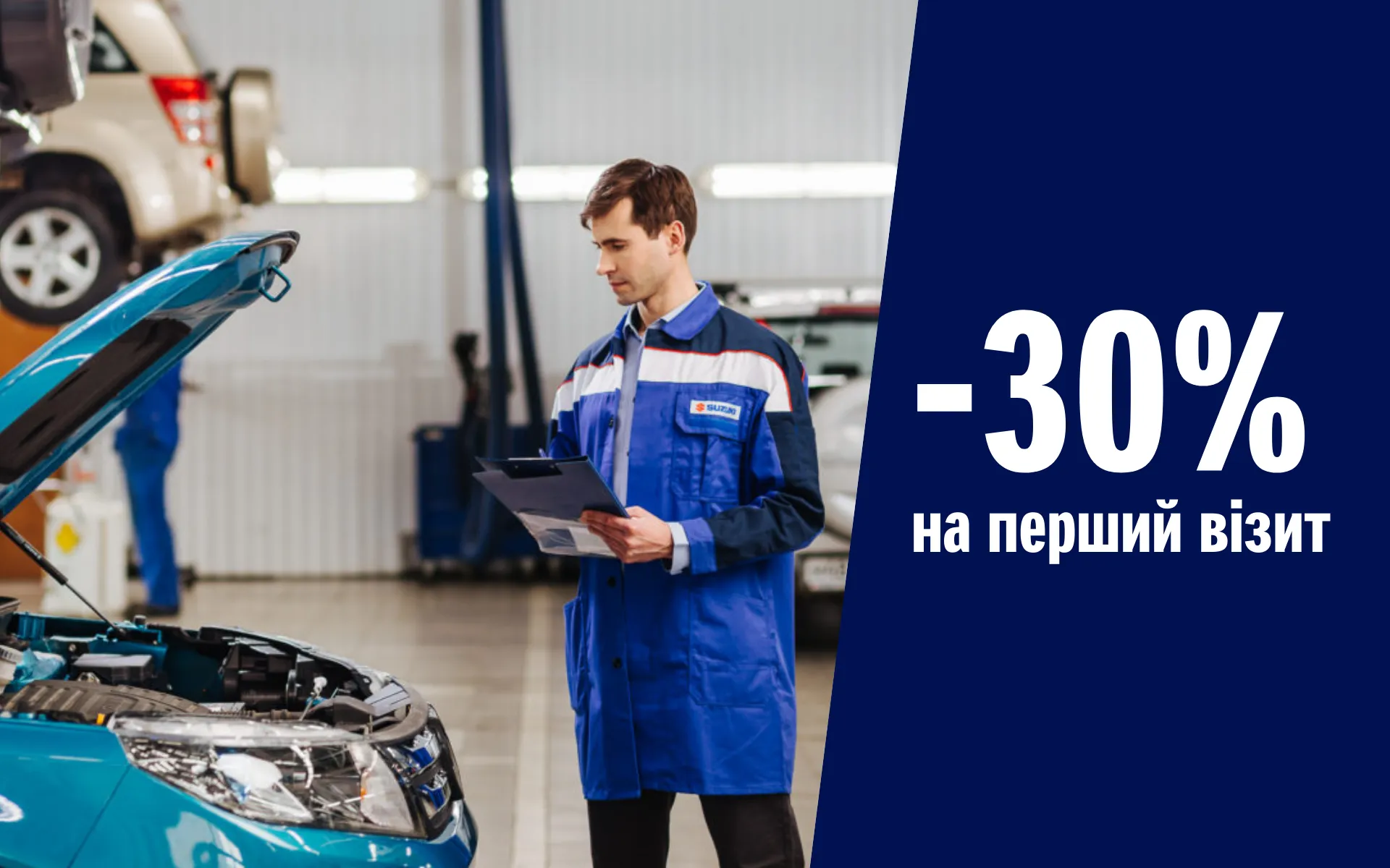 *Знижка до 30% діє на послуги та запасні частини, за умови першого візиту, не розповсюджується на малярно-кузовні роботи. Деталі уточнюйте у консультанта сервісу. Пропозиція діє до 31.12.2026 р.